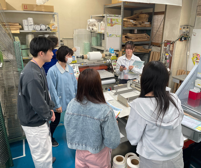 昨年も受け入れたこの授業。今回は代表ではなく工場長や社員が学生たちを案内。