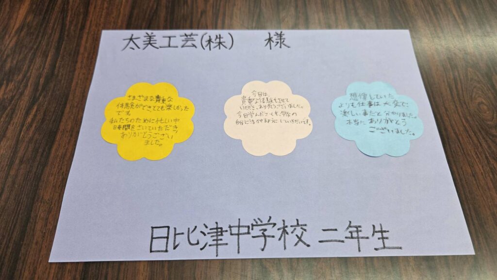 2025.12.12 日比津中学校職場体験学習を受け入れ